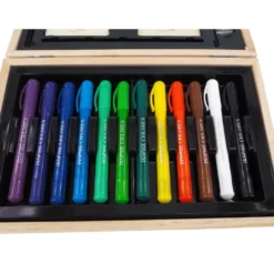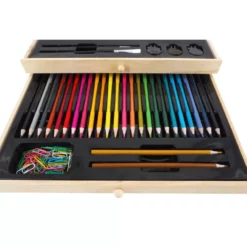 Duży zestaw – aż 196 elementów, zróżnicowana kolorystyka przyborów i możliwość doświadczania różnych technik rysunku