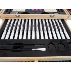 Zestaw artystyczny do malowania i rysowania 196 elementów + solidna drewniana walizka