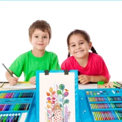 Duży zestaw – aż 208 elementów, zróżnicowana kolorystyka przyborów i możliwość doświadczania różnych technik rysunku.