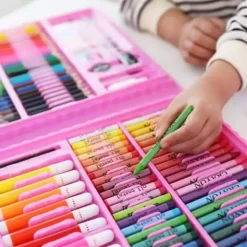 Duży zestaw – aż 208 elementów, zróżnicowana kolorystyka przyborów i możliwość doświadczania różnych technik rysunku