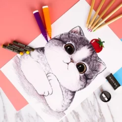 Duży zestaw – aż 298 elementów, zróżnicowana kolorystyka przyborów i możliwość doświadczania różnych technik rysunku.