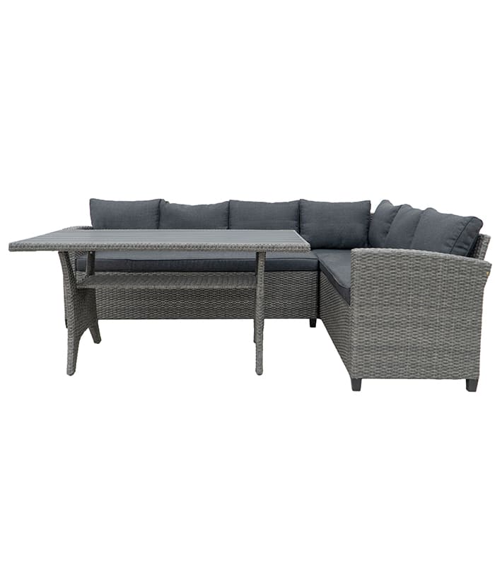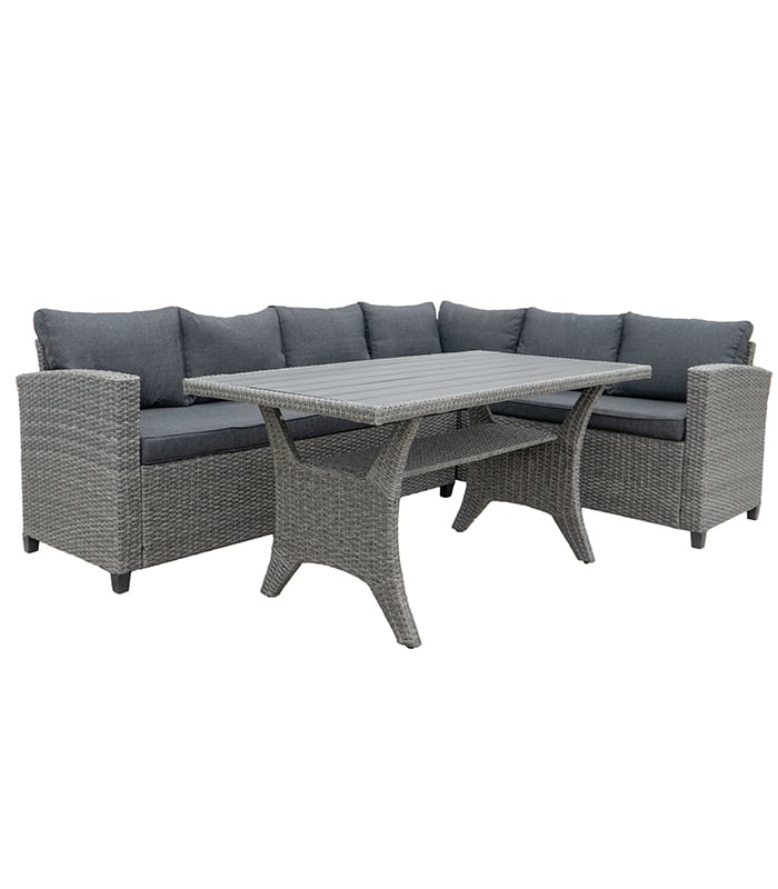 Wykonanie z wysokiej jakości technorattanu sprawia, że zestaw jest odporny na zmienne warunki atmosferyczne, promieniowanie UV oraz wilgoć. Nie wymaga skomplikowanej konserwacji – wystarczy przetrzeć go wilgotną ściereczką, by odzyskał swój blask. Stabilna, metalowa konstrukcja gwarantuje trwałość na długie lata.
