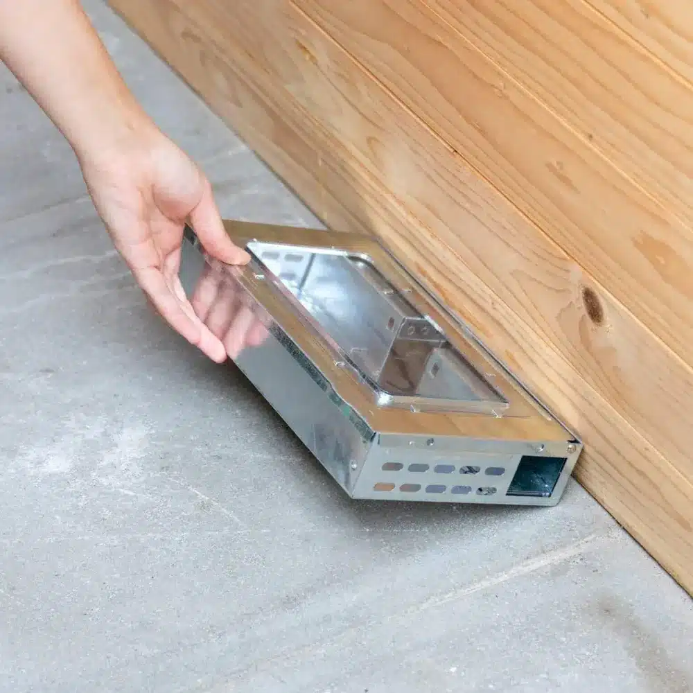 Otwórz wieczko z okienkiem rewizyjnym ku górze i umieść w przynętę np. kawałek wędliny, kabanosa, pszenicy czy ziarna słonecznika. Zamknij a następnie ustaw pułapkę w miejscu przebywania gryzoni. Gdy mysz wejdzie do pojemnika, pułapka zostanie uruchomiona. Po złapaniu myszy wynieś pułapkę na zewnątrz i wypuść zwierzę.